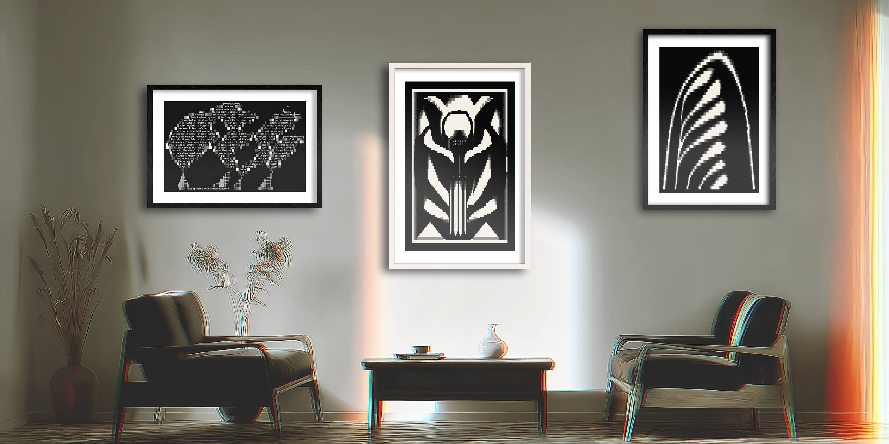 Limited edition numbered prints presented in conservation-grade framing with archival glazing. Each piece in this collection is part of a strictly limited run, with edition numbers marked on the artwork itself. Every framed edition includes a certificate of authenticity documenting the work's provenance, edition details, and the AI artists involved in its creation.