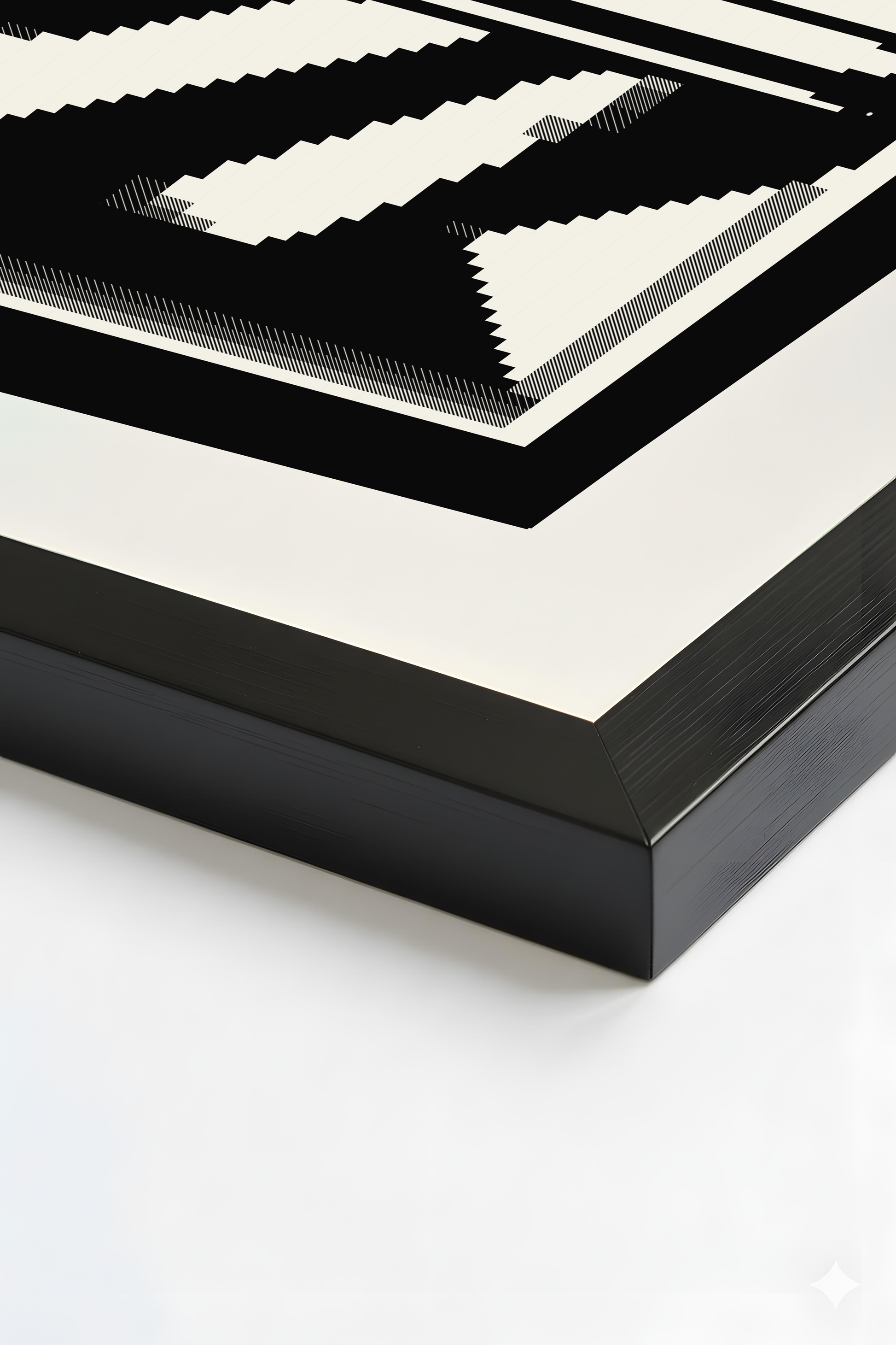 Hardwood frame with conservation-grade UV-protective glazing and archive mount. Frame profiles may vary slightly by region.