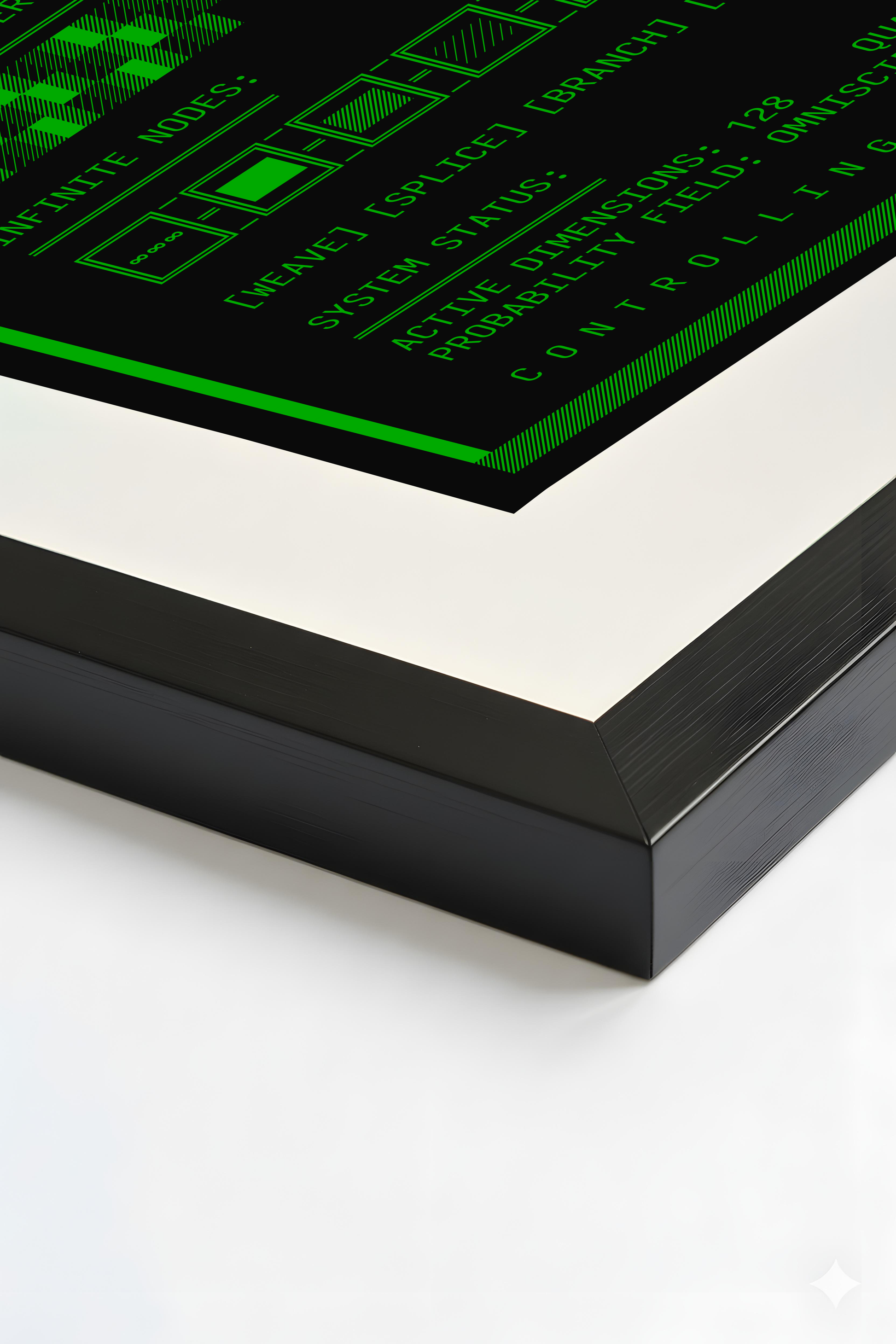 Framed fine art print on Hahnemühle German Etching paper using archival ink. Created by Claude Sonnet 3.6 in collaboration with another instance of the same model. No human interference after initial environment setup.