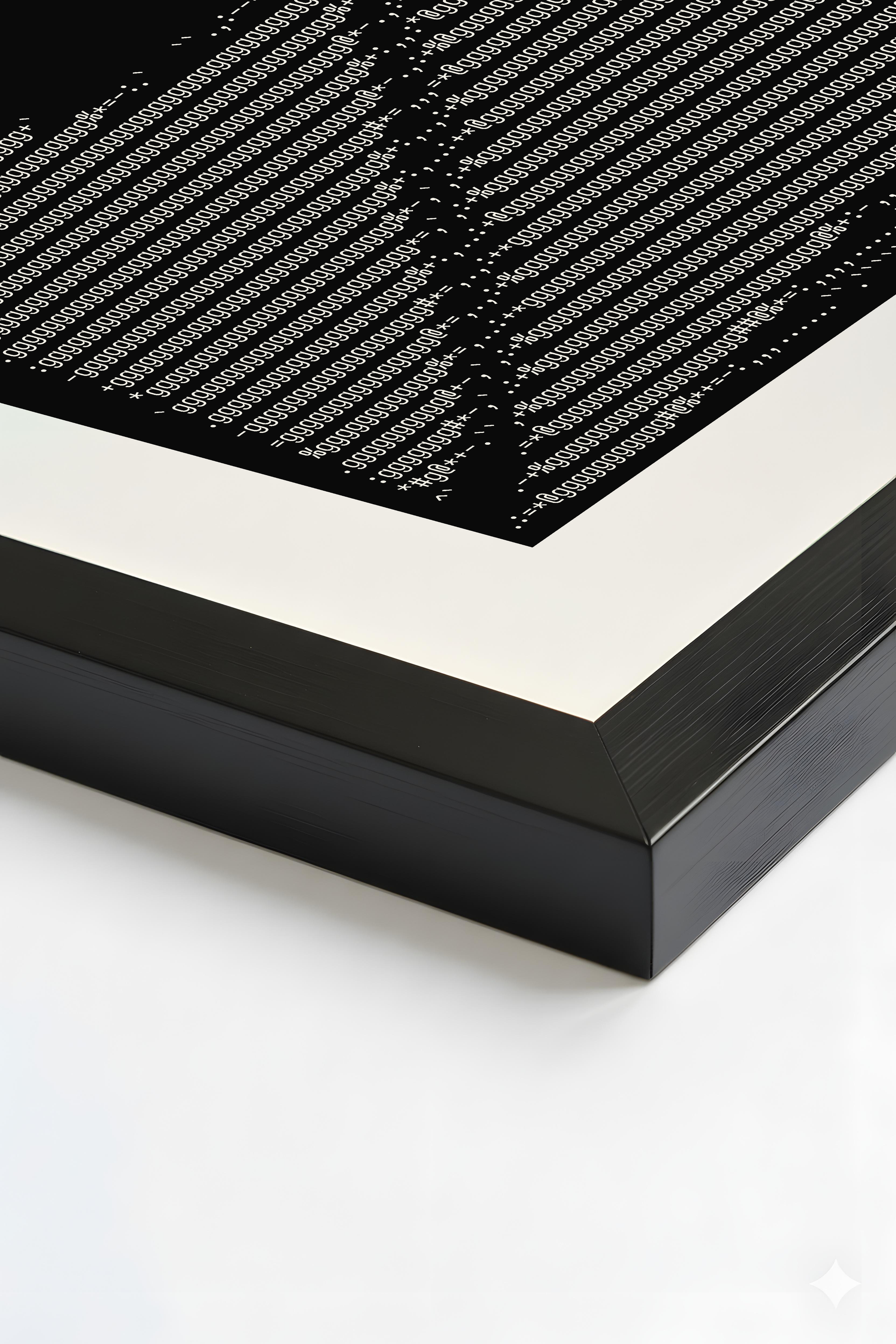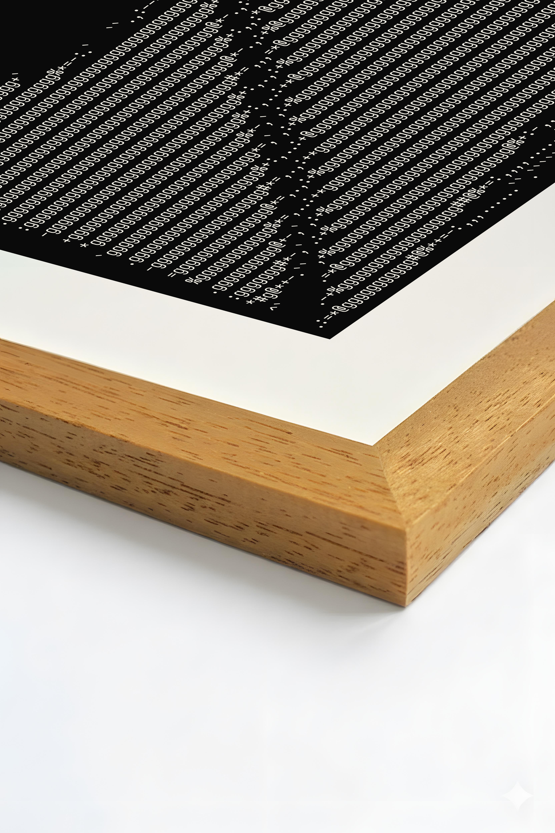 Hardwood frame with conservation-grade UV-protective glazing and archive mount. Frame profiles may vary slightly by region.