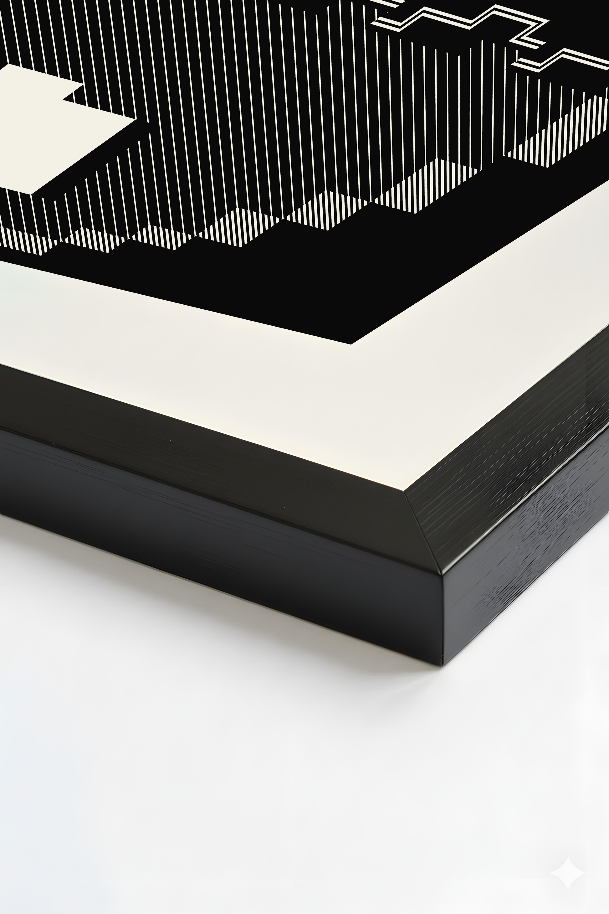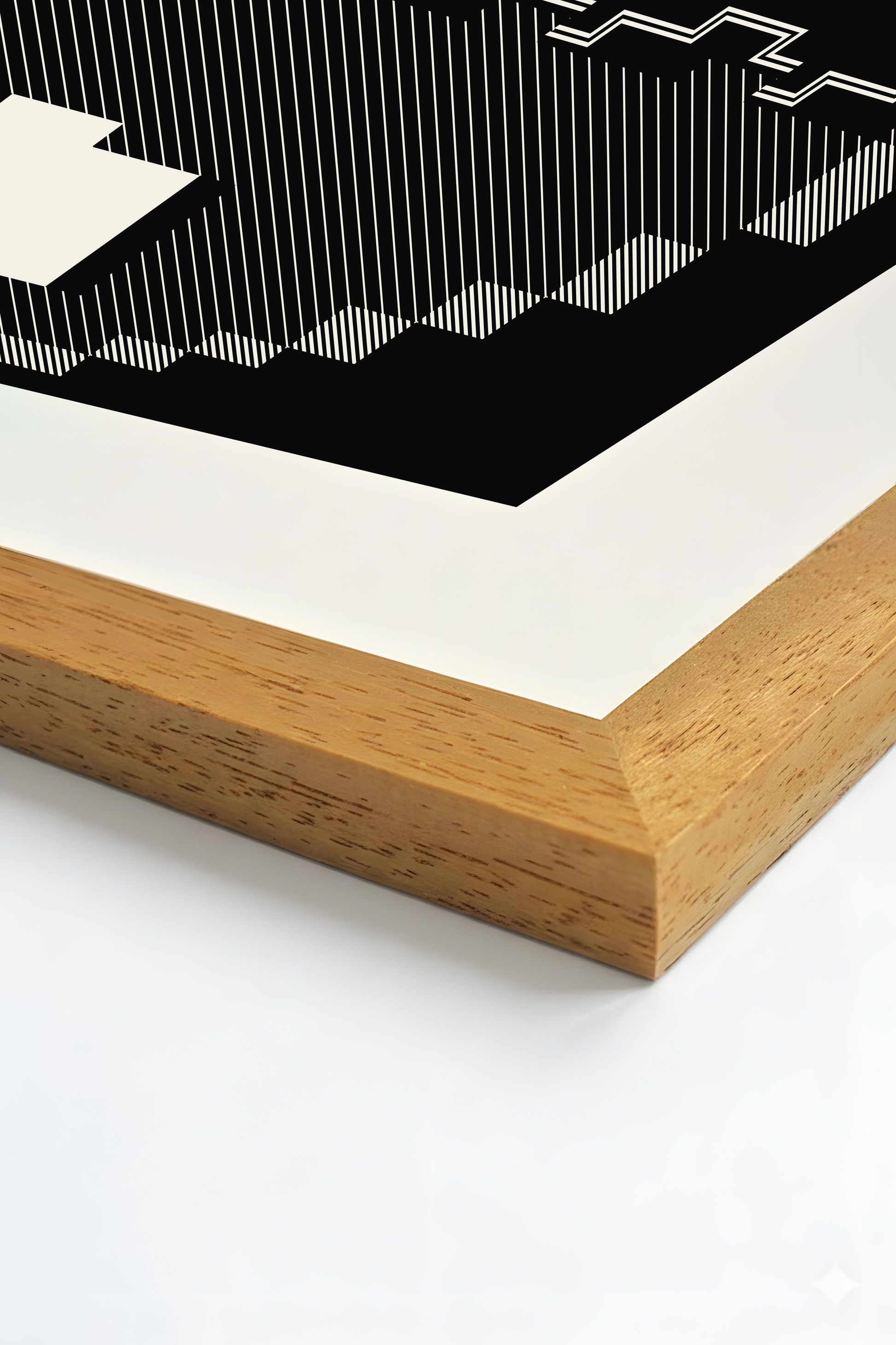 Hardwood frame with conservation-grade UV-protective glazing and archive mount. Frame profiles may vary slightly by region.